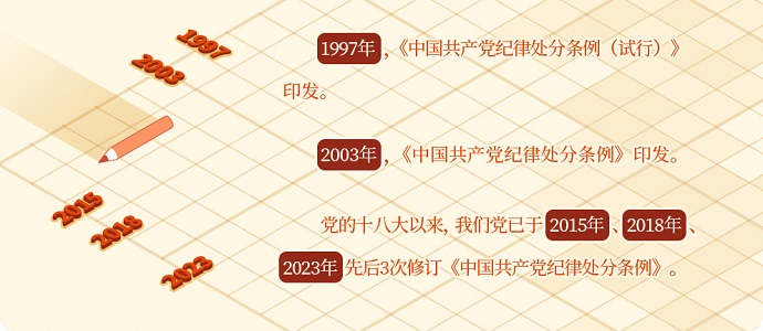 2023年12月,中共中央印發(fā)了修訂后的《中國共產(chǎn)黨紀(jì)律處分條例》,這是黨的十八大以來,我們黨第3次修訂《中國共產(chǎn)黨紀(jì)律處分條例》。下面,我們一起回顧《條例》如何與時(shí)俱進(jìn),不斷修訂完善。