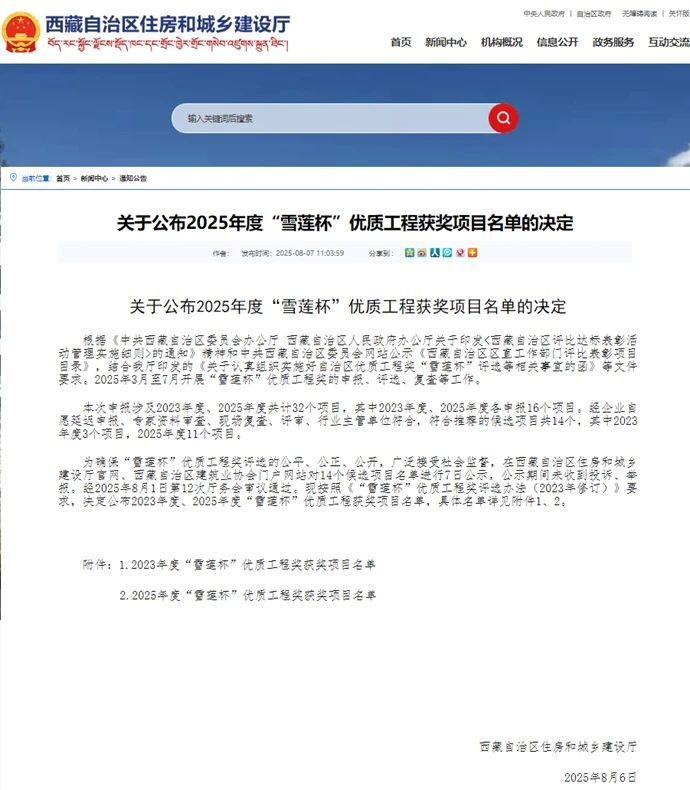 8月7日,西藏自治區(qū)住房和城鄉(xiāng)建設(shè)廳公布2025年度“雪蓮杯”優(yōu)質(zhì)工程獲獎(jiǎng)項(xiàng)目名單,由西藏開(kāi)投吉雅光伏公司投資建設(shè)的昌都察雅縣吉塘鎮(zhèn)20萬(wàn)千瓦+16萬(wàn)千瓦時(shí)儲(chǔ)能牧光互補(bǔ)復(fù)合型光伏發(fā)電項(xiàng)目榮獲該獎(jiǎng)項(xiàng)。