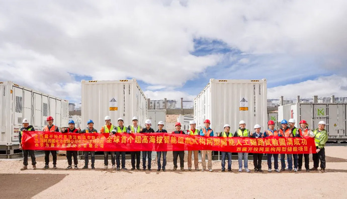 2024年10月31日,由西藏開投集團投資、中國電建昆明院-電建建筑公司聯(lián)合體項目部承建的全球首個超高海拔、超低溫度、極弱電網(wǎng)智能組串式構網(wǎng)型光儲電站——西藏開投阿里地區(qū)改則縣30MW(配儲能)光伏發(fā)電項目成功并網(wǎng)發(fā)電,標志著新能源技術在高原地區(qū)的重大突破,可減少化石資源的消耗、有害氣體對環(huán)境的污染,有力促進當?shù)亟?jīng)濟社會發(fā)展,改善居民生活條件。項目于2024年12月25日獲評2024年度“光能杯”中國儲能產(chǎn)業(yè)優(yōu)秀電網(wǎng)側儲能示范項目。
