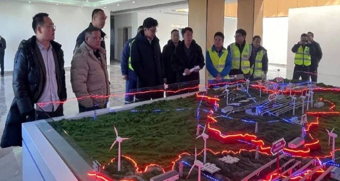 肖長歌一行在色尼區(qū)曲果嘎姆風(fēng)電項目調(diào)研現(xiàn)場。