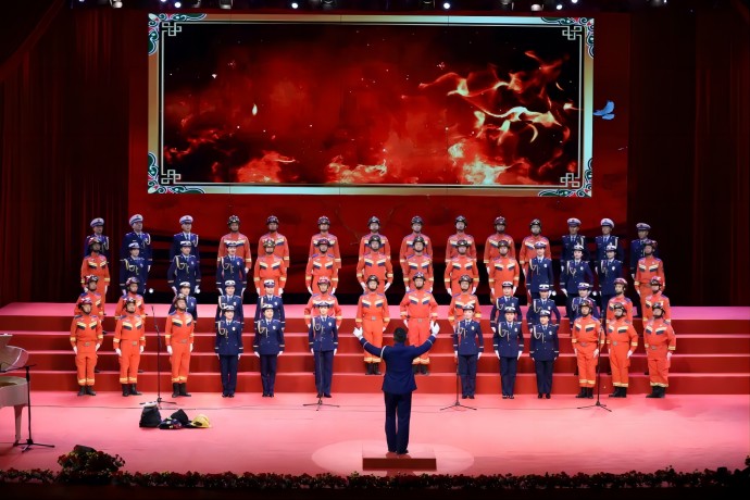 “朋友!你到過黃河嗎?你渡過黃河嗎?你還記得河上的船夫拼著性命和驚濤駭浪搏戰(zhàn)的情景嗎?如果你已經(jīng)忘掉的話,那么你聽吧!”由58人組成的西藏開投集團(tuán)參賽隊(duì)以一曲《保衛(wèi)黃河》,唱響了黨領(lǐng)導(dǎo)全國人民走過的風(fēng)雨歷程,唱出了戰(zhàn)勝敵人、奪取勝利的激情。