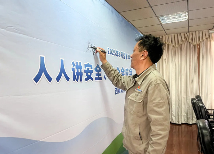 6月4日,西藏開(kāi)投八宿光伏電站組織召開(kāi)“人人講安全、個(gè)個(gè)會(huì)應(yīng)急——查找身邊安全隱患”安全生產(chǎn)月活動(dòng)啟動(dòng)會(huì),會(huì)議宣貫了八宿光伏電站2025年“安全生產(chǎn)月”活動(dòng)方案,并對(duì)公司“安全生產(chǎn)月”活動(dòng)作了詳細(xì)安排部署。會(huì)后,電站員工紛紛在“安全生產(chǎn)月”主題橫幅上鄭重簽名,表達(dá)對(duì)安全生產(chǎn)的莊嚴(yán)承諾。
