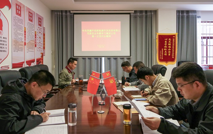 會(huì)議要求,一要深刻認(rèn)識(shí)集團(tuán)公司第一次黨代會(huì)的重大意義和豐富內(nèi)涵,把學(xué)習(xí)好、宣傳好、貫徹好黨代會(huì)精神作為當(dāng)前一段時(shí)間最大的政治任務(wù),迅速在新能源公司上下掀起學(xué)習(xí)黨代會(huì)精神的熱潮。通過(guò)黨委理論學(xué)習(xí)中心組集中學(xué)習(xí)、支部會(huì)議、研討會(huì)等多種方式,堅(jiān)持集中學(xué)習(xí)和個(gè)人自學(xué),通讀報(bào)告與專(zhuān)題研討相結(jié)合,確保學(xué)習(xí)宣傳貫徹取得實(shí)實(shí)在在的效果。二要將學(xué)習(xí)集團(tuán)公司第一次黨代會(huì)精神與改進(jìn)作風(fēng)狠抓落實(shí)工作結(jié)合起來(lái),與按期推動(dòng)吉塘一期20萬(wàn)千瓦光伏項(xiàng)目結(jié)合起來(lái),并以此為主線,所有工作都要往這條主線聚焦。從黨委到各黨支部、各部門(mén)逐級(jí)有序深入組織學(xué)習(xí)宣傳貫徹黨代會(huì)精神活動(dòng),確保學(xué)習(xí)貫徹黨代會(huì)精神實(shí)現(xiàn)全覆蓋,確保學(xué)習(xí)一個(gè)不少,人人參與。三要把新能源公司各項(xiàng)工作融于集團(tuán)公司發(fā)展戰(zhàn)略全局考慮,聚焦“四件大事”“四個(gè)確保”,聚力“四個(gè)創(chuàng)建”“四個(gè)走在前列”,切實(shí)把集團(tuán)公司第一次黨代會(huì)精神落實(shí)到新能源公司主責(zé)主業(yè)和今年各項(xiàng)工作目標(biāo)及明年工作超前謀劃之中,推動(dòng)學(xué)習(xí)貫徹往實(shí)里走、往深里走,為助力集團(tuán)公司高質(zhì)量發(fā)展凝聚磅礴力量,在集團(tuán)公司“二次創(chuàng)業(yè)”中以實(shí)績(jī)展現(xiàn)新能源公司新?lián)?dāng)、新作為、新形象。
