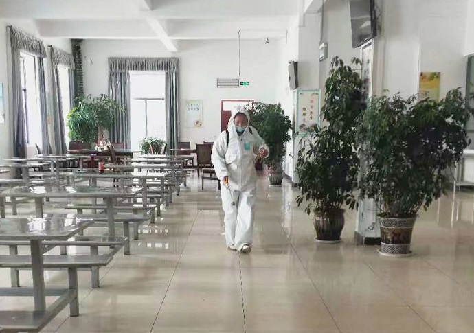 (員工食堂消毒 褚瑜卿攝)