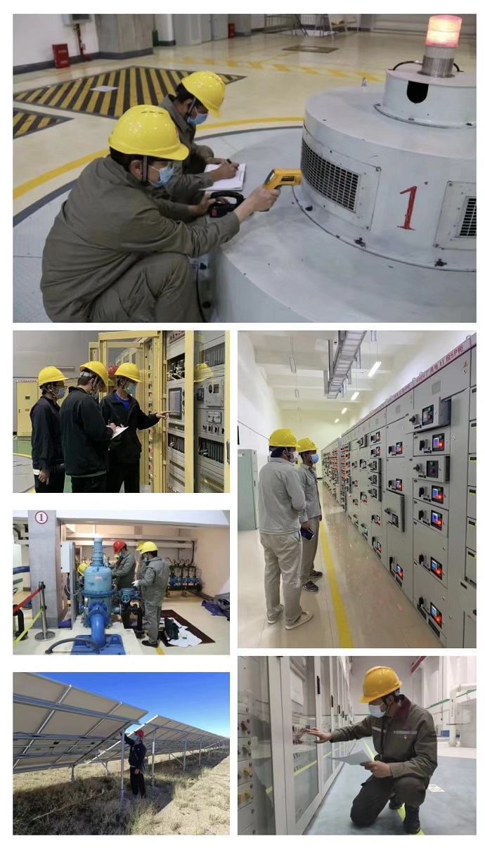 加強(qiáng)巡檢,保電護(hù)航。清能中心各電廠全體干部職工主動(dòng)帶頭、主動(dòng)作為、主動(dòng)擔(dān)當(dāng),加強(qiáng)巡檢、點(diǎn)檢和特巡頻次。認(rèn)真監(jiān)盤、細(xì)心維護(hù),加大巡檢力度,全面排查隱患,及時(shí)消缺,確保機(jī)組安全穩(wěn)定運(yùn)行,充分彰顯了新時(shí)代青年電力人的責(zé)任與擔(dān)當(dāng)。果多水電站在保供電期間共開展設(shè)備消缺9項(xiàng),每日開展特維巡檢3次,按期開展柴油發(fā)電機(jī)啟停、泄洪閘門啟閉、保護(hù)系統(tǒng)壓板核對(duì)、避雷器動(dòng)作次數(shù)、泄露電流檢查和GIS氣室壓力檢查等定期工作,為疫情期間電站穩(wěn)發(fā)保供奠定了堅(jiān)實(shí)基礎(chǔ)。金橋水電站在保電期間完成每天設(shè)備巡檢共計(jì)16次,點(diǎn)檢2次,特巡4次,消缺維護(hù)12項(xiàng),認(rèn)真完成每一秒監(jiān)盤、每一次操作、每一次巡檢,每一個(gè)消缺,確保在這非常時(shí)期設(shè)備安全穩(wěn)定運(yùn)行。瓦托水電站共開展定期巡檢、交接班巡檢、設(shè)備點(diǎn)檢、領(lǐng)導(dǎo)帶班檢查、防汛檢查、特維巡檢等巡視檢查巡檢86次,巡視中發(fā)現(xiàn)的3號(hào)機(jī)組滑環(huán)室碳刷打火嚴(yán)重問題,及時(shí)利用3號(hào)機(jī)組停機(jī)備用時(shí)間組織相關(guān)人員開展緊急處理,清理碳粉、更換碳刷,防止機(jī)組轉(zhuǎn)子一點(diǎn)接地故障,為3號(hào)機(jī)組安全穩(wěn)定運(yùn)行提供了保障,確保電站正常運(yùn)行。這樣的例子在每個(gè)電站有很多。“今年全國(guó)旱情都太嚴(yán)重了,入庫(kù)流量太少,我們一定盡最大努力做好保電工作”,這是清能中心每個(gè)電站工作人員共同的心聲。在奮戰(zhàn)一線的全體職工的共同努力下,保證了安全、保證了生產(chǎn)、保證了電量,實(shí)現(xiàn)了零非停,以實(shí)際行動(dòng)為西藏人民“保電護(hù)航”。據(jù)統(tǒng)計(jì),自8月10日以來,清能中心累計(jì)發(fā)電量 11058萬(wàn)千瓦時(shí),上網(wǎng)電量10936萬(wàn)千瓦時(shí),為本次疫情防控提供了強(qiáng)有力的電力保障。