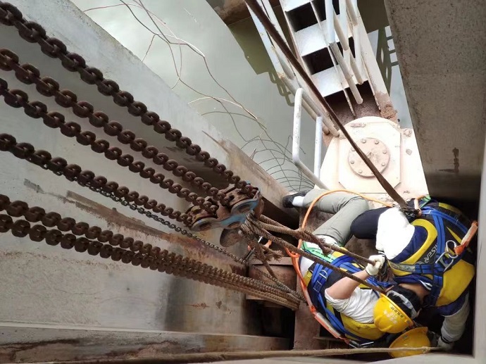 9月5日11時(shí)30分,果多水電站上游來(lái)水量突增,水庫(kù)攔污漂變浮箱無(wú)法及時(shí)上浮,導(dǎo)致大量垃圾飄進(jìn)進(jìn)水口區(qū)域,給機(jī)組運(yùn)行造成一定的安全隱患。吉克爾博接到部門安排后,馬上帶領(lǐng)兩名青年員工到浮箱上利用千斤頂、手動(dòng)葫蘆等工具開展處理。經(jīng)過(guò)分析、討論,判定攔污漂卡澀的原因?yàn)閷?dǎo)向輪長(zhǎng)期受力不均發(fā)生變形,利用千斤頂反向作用力和手拉葫蘆的牽引力,最終將攔污漂卡澀問(wèn)題解決。