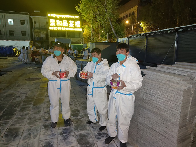 9月15日,接到自治區(qū)國資委及西藏開投集團(tuán)公司通知,拉薩新建方艙醫(yī)院需工程類人員支援,酒店緊急抽調(diào)工程類專業(yè)人員4人前往支援,從15日21時到次日上午9時完成了支援任務(wù)。12個小時的忙碌下來,每個人都是汗流浹背,可沒有人抱怨,沒有人喊苦喊累。