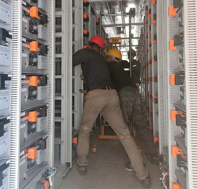 抓疫情防控是硬任務(wù),抓儲(chǔ)能建設(shè)亦是硬道理。9月3日,為保障儲(chǔ)能設(shè)備按期到廠,八宿光伏電站主動(dòng)對(duì)接廠家,掌握設(shè)備運(yùn)輸車輛軌跡,積極聯(lián)系各地防疫部門開具證明。自儲(chǔ)能項(xiàng)目開工以來,安排專人蹲守現(xiàn)場監(jiān)督儲(chǔ)能建設(shè),9月9日設(shè)備及配件陸續(xù)到廠后,及時(shí)成立驗(yàn)收組對(duì)設(shè)備及配件進(jìn)行到廠驗(yàn)收。9月17日第一批電池艙到廠后,八宿光伏電站開啟“白+黑”工作模式,完成設(shè)備吊裝,具備單體調(diào)試條件。目前八宿光伏電站土建施工、一體機(jī)吊裝已全部完成,預(yù)計(jì)9月底具備涉網(wǎng)試驗(yàn)條件。