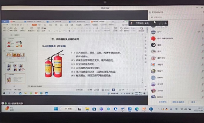 11月11日,油氣管道分公司組織開(kāi)展消防安全知識(shí)線上專題學(xué)習(xí)會(huì)。會(huì)議傳達(dá)學(xué)習(xí)了西藏自治區(qū)國(guó)資委關(guān)于轉(zhuǎn)發(fā)《2022年“119”消防宣傳月活動(dòng)方案》的通知和《消防安全基礎(chǔ)知識(shí)培訓(xùn)手冊(cè)》,觀看了《2022年近期住宅小區(qū)消防安全警示片》。