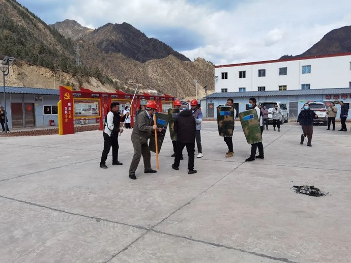 3月15日,果多水電公司與柴維鄉(xiāng)政府、柴維鄉(xiāng)派出所、柴維鄉(xiāng)衛(wèi)生院聯(lián)合開(kāi)展反自焚、反恐怖襲擊應(yīng)急演練。