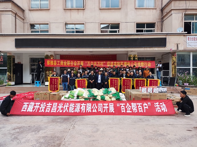 為深入貫徹落實市委二屆九次全會精神,落實《關于持續(xù)增加農(nóng)牧民收入的十條措施》舉措,9月21日,西藏開投吉昌光伏能源有限公司組織開展“百企幫百戶”結對幫扶活動。察雅縣工商聯(lián)主席鄧增旺扎、西藏開投吉昌光伏能源有限公司執(zhí)行董事李玲出席活動。