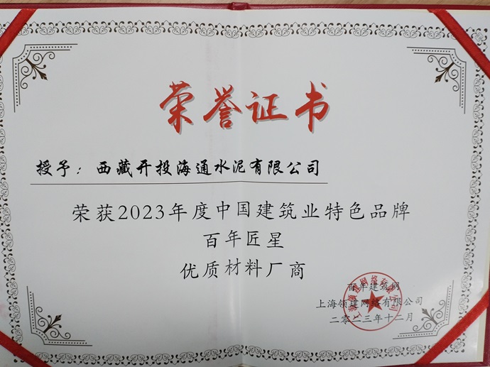 西藏開(kāi)投海通水泥公司榮獲中國(guó)建筑業(yè)特色品牌百年匠星優(yōu)質(zhì)材料廠商榮譽(yù)稱(chēng)號(hào)