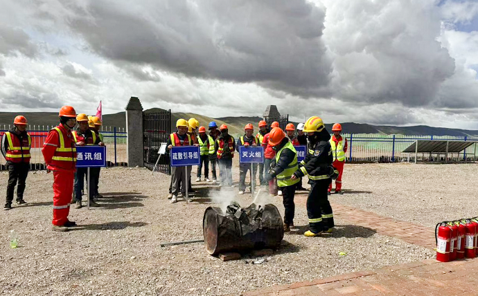 此次演習(xí)邀請了那曲市安多縣消防救援大隊防火參謀進行消防知識培訓(xùn)及實際操作教學(xué)。培訓(xùn)過程中,首先觀看了近年來多起施工現(xiàn)場火災(zāi)典型案例,并對案例進行了深刻剖析,明晰了火災(zāi)事故中相應(yīng)人員所承擔(dān)的法律責(zé)任,同時講解了預(yù)防、滅火和自救逃生方法。接著,消防隊通過以練代訓(xùn)的方式,讓參訓(xùn)人員上手實操,全面了解干粉滅火器的使用方法。