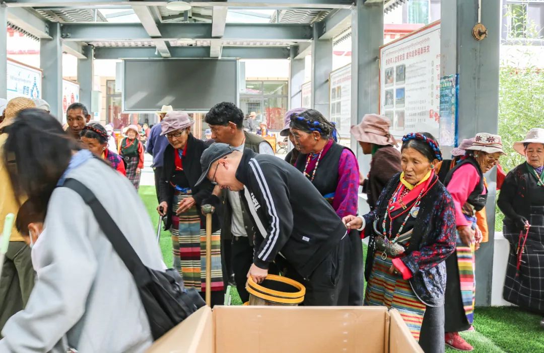 活動現(xiàn)場,西藏開投新能源公司員工為特困人員集中供養(yǎng)服務(wù)中心的老人送上蔬菜、面粉及生活用品等慰問品,幫助他們打掃衛(wèi)生、制作藏包子,并詳細(xì)詢問他們的日常起居、身體健康狀況、家庭情況等。