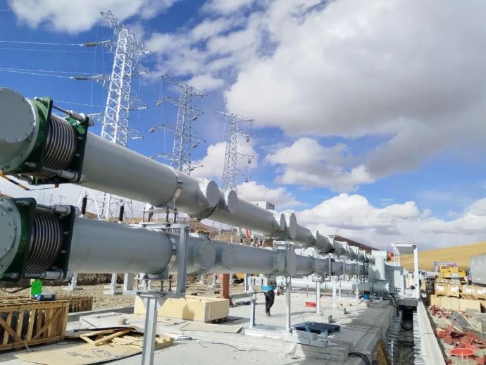 西藏開投色尼區(qū)達(dá)嘎普獨(dú)立構(gòu)網(wǎng)型儲(chǔ)能電站GIS安裝。(圖由中國電建集團(tuán)華東院提供)
