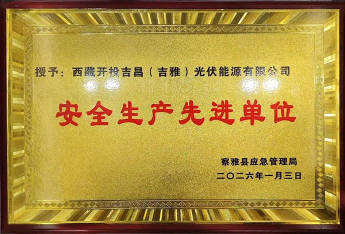 近日,西藏開投吉昌(吉雅)光伏能源公司被察雅縣應(yīng)急管理局授予“安全生產(chǎn)先進(jìn)單位”榮譽(yù)稱號。