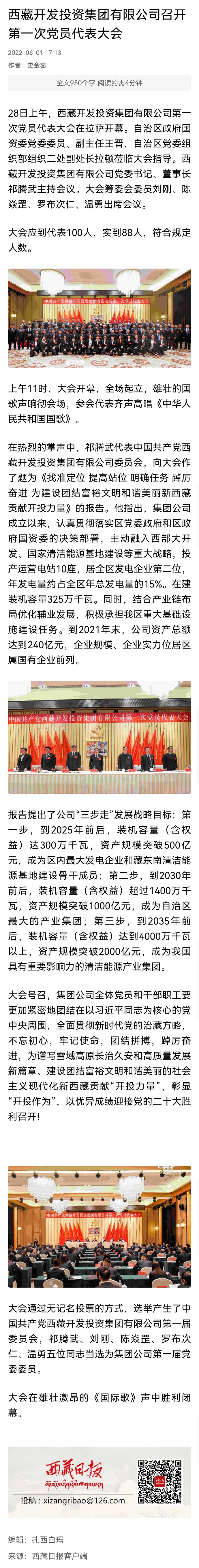 中國共產(chǎn)黨西藏開發(fā)投資集團(tuán)有限公司 第一次黨員代表大會(huì)
