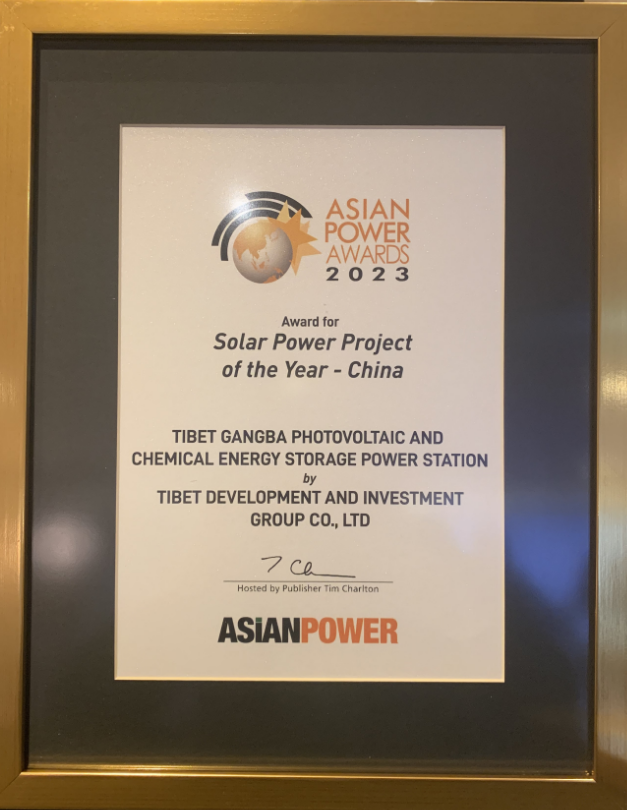 11月8日晚,在馬來西亞首都吉隆坡舉行的“2023年亞洲電力獎”頒獎大會上,西藏開發(fā)投資集團有限公司崗巴光伏光熱發(fā)電分公司從眾多入圍的優(yōu)秀電力企業(yè)中脫穎而出,斬獲“2023年亞洲電力獎——年度最佳太陽能發(fā)電項目獎和亞太區(qū)年度電池存儲項目-銅獎”,成為同年度中國唯一一家獲得二個獎項的發(fā)電企業(yè)。