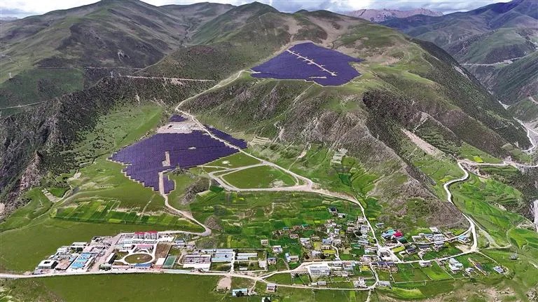 (俯瞰那曲市索縣熱瓦鄉(xiāng)熱熱村的50MW牧光互補(bǔ)儲能項目)