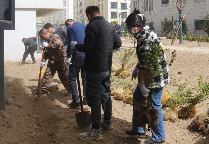 活動(dòng)現(xiàn)場(chǎng),在聽取工作人員講解植樹注意事項(xiàng)后,大家三五一組、分工協(xié)作,有的揮鍬鏟土、填苗澆水,有的培土圍堰、澆水灌溉,還有的清掃垃圾、搬運(yùn)雜物?,F(xiàn)場(chǎng)氣氛活躍、組織有序,呈現(xiàn)出一片熱火朝天的忙碌景象。每道工序一絲不茍、認(rèn)真細(xì)致,展現(xiàn)了團(tuán)結(jié)協(xié)作、奮發(fā)向上的精神風(fēng)貌。