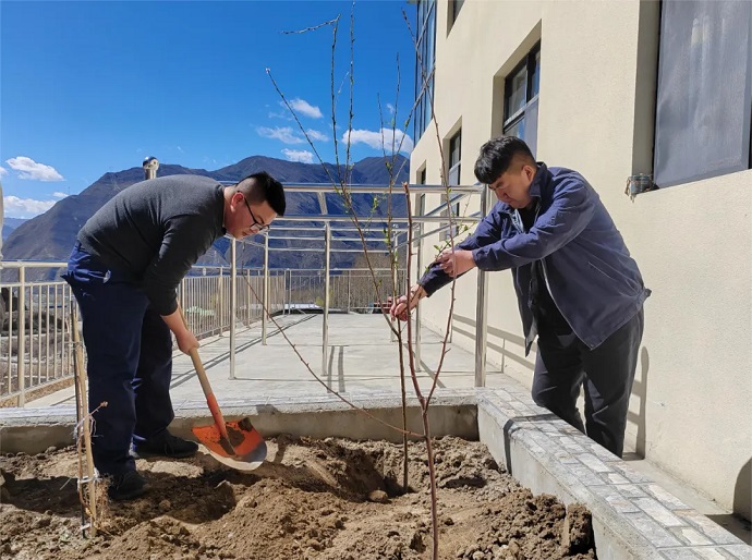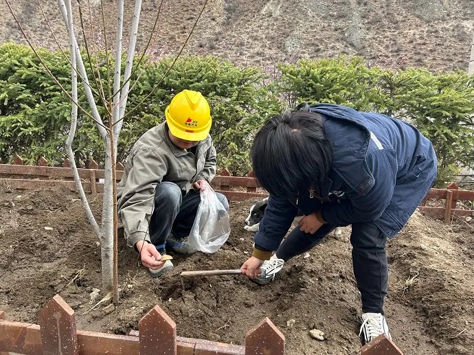 4月3日,嘎堆水電公司黨支部組織黨員干部職工開展“引領(lǐng)綠色行動,共筑生態(tài)家園”主題種植活動。