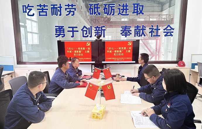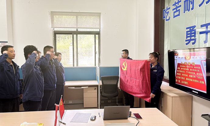 活動伊始,莊嚴(yán)的升國旗、唱國歌儀式在嘎堆水電公司生活營地舉行,鮮艷的五星紅旗在全體黨員和員工的注目禮中冉冉升起,雄壯的國歌聲響徹云霄。接著,嘎堆水電公司黨支部組織新黨員在黨員活動室舉行了入黨宣誓儀式,并開展了重溫入黨誓詞活動。隨后,嘎堆水電公司黨支部書記謝鵬為大家上了一堂生動的專題黨課。黨課圍繞黨的創(chuàng)新理論、黨的基本知識、黨的百年奮斗史、新時代偉大成就等方面展開,引導(dǎo)黨員們奮進(jìn)新征程、建功新時代。最后,黨員干部職工齊聚一堂,暢談黨的光輝歷程和豐功偉績。大家紛紛表示,立足崗位比貢獻(xiàn),進(jìn)一步發(fā)揮好黨組織的戰(zhàn)斗堡壘作用和黨員的模范表率作用。