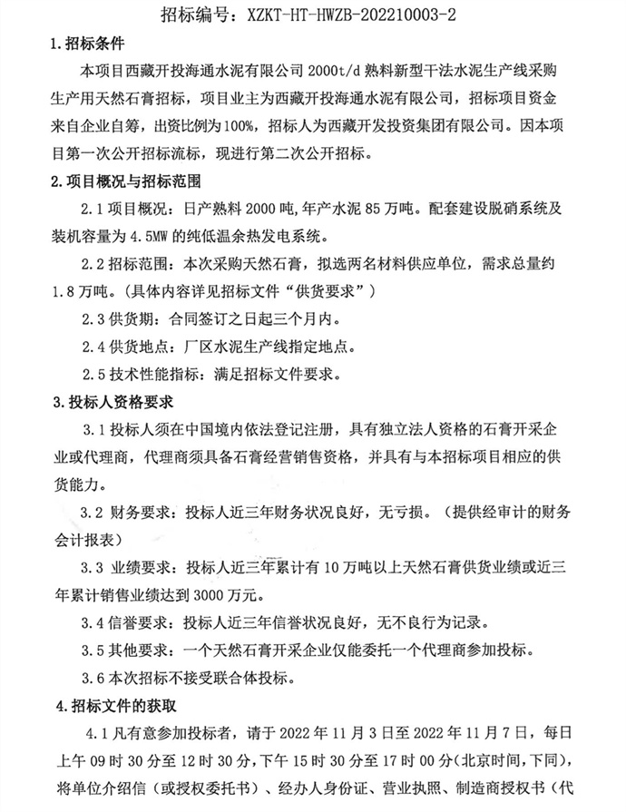 西藏開投海通水泥有限公司2000t/d熟料新型干法水泥生產線