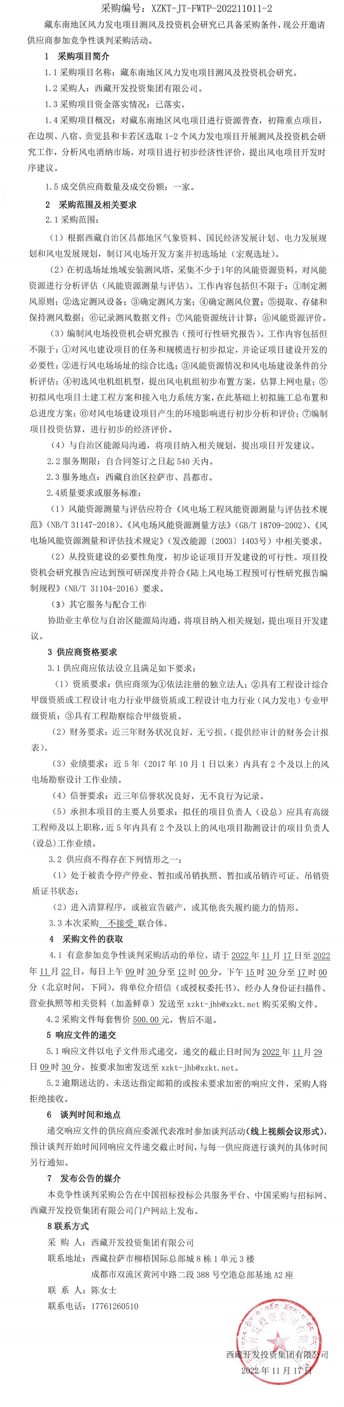 競爭性談判采購二次公告