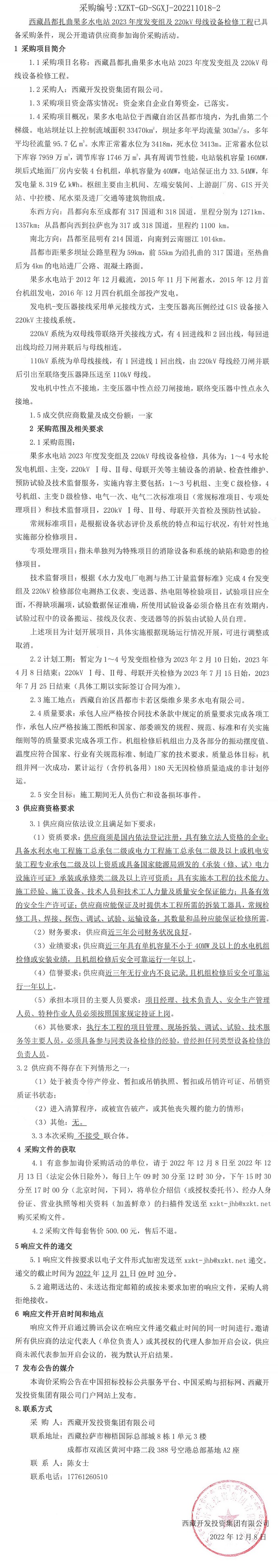 西藏昌都扎曲果多水電站2023年度發(fā)變組及220kV母線設(shè)