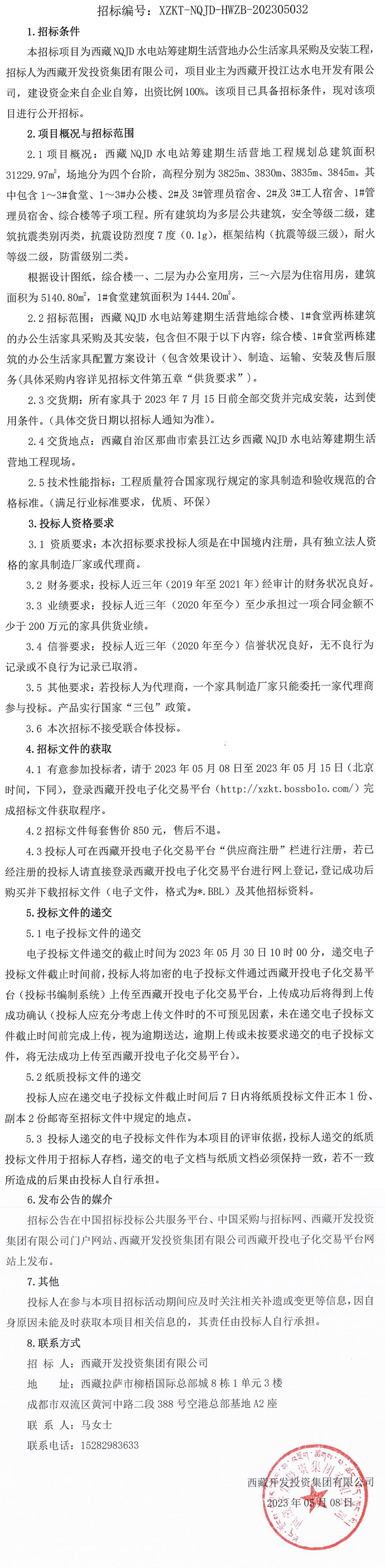西藏NQJD水電站籌建期生活營(yíng)地辦公生活家具采購(gòu)及安裝工程招標(biāo)公告