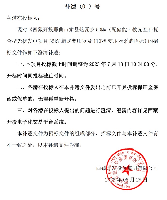 西藏開(kāi)投那曲市索縣熱瓦鄉(xiāng)50MW(配儲(chǔ)能)牧光互補(bǔ)復(fù)合型光伏發(fā)電項(xiàng)目35kV箱式變壓器及110kV變壓器采購(gòu)招標(biāo)