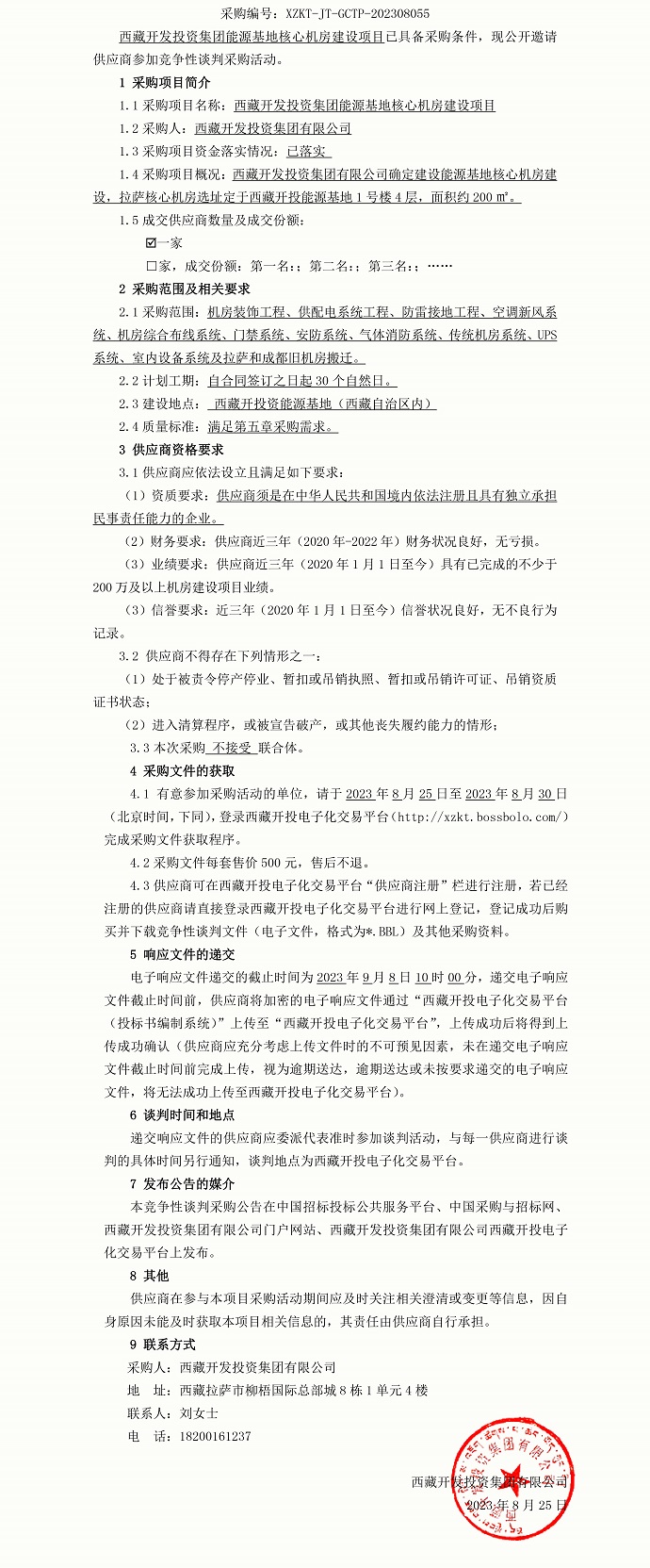 西藏開發(fā)投資集團(tuán)拉薩能源基地核心機(jī)房建設(shè)項(xiàng)目談判公告