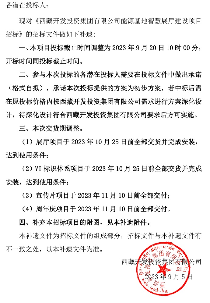西藏開(kāi)發(fā)投資集團(tuán)有限公司能源基地智慧展廳建設(shè)項(xiàng)目招標(biāo)