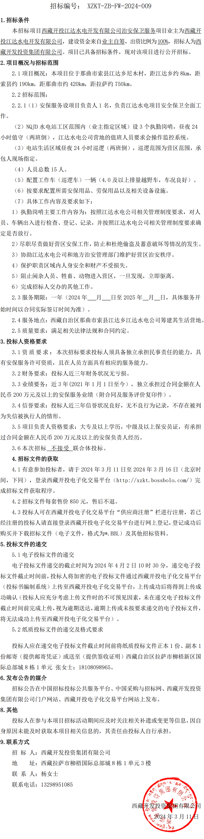 西藏開(kāi)投江達(dá)水電開(kāi)發(fā)有限公司安保服務(wù)招標(biāo)公告