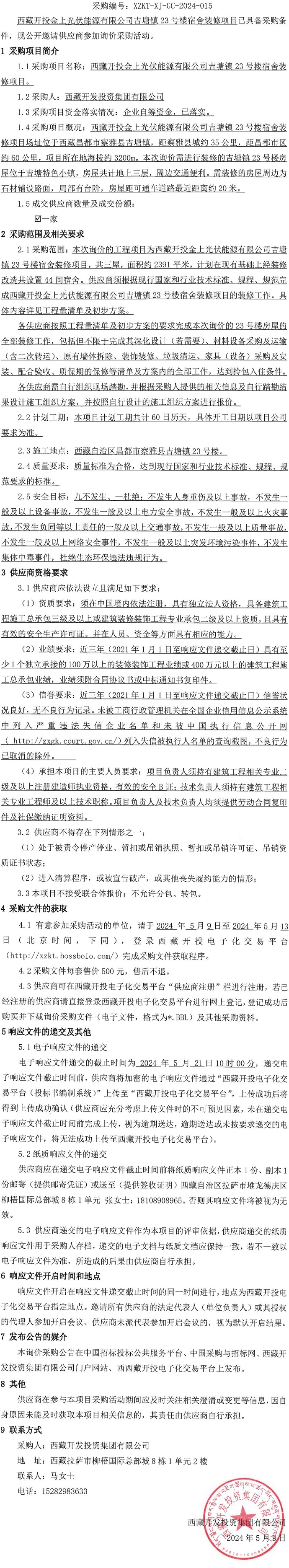 西藏開投金上光伏能源有限公司吉塘鎮(zhèn)23號(hào)樓宿舍裝修