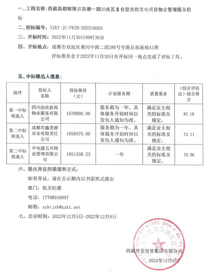 中標候選人公示