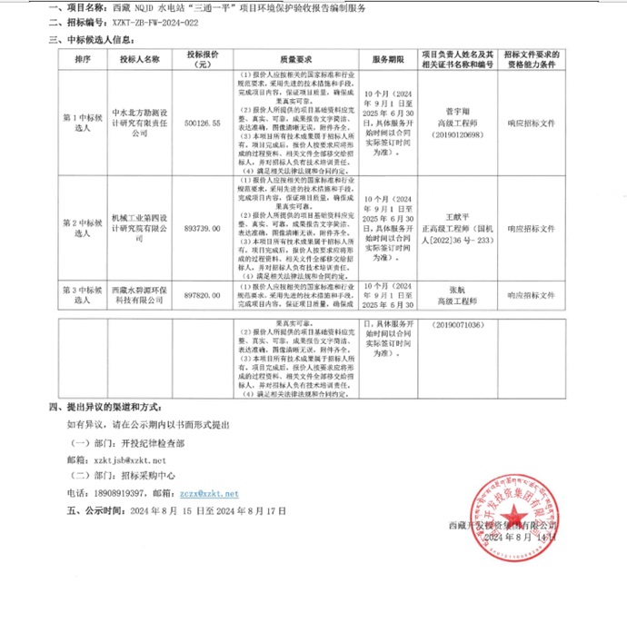 中標候選人公示