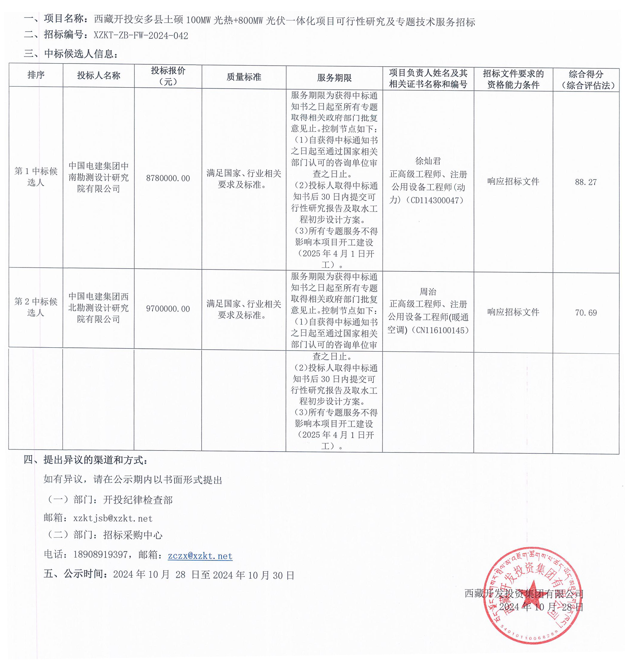 中標(biāo)候選人公示