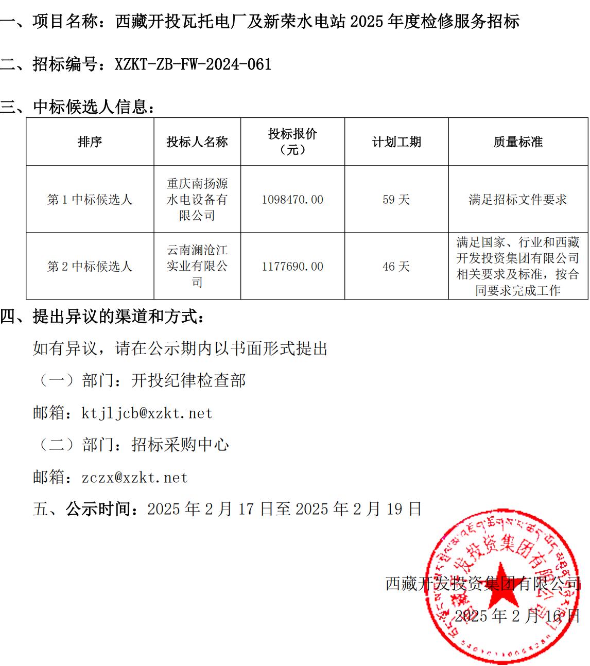 中標(biāo)候選人公示